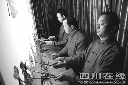雪白的幕布上,兇猛的張飛,驍勇的關羽輪流揮刀騎馬上陣。鼓點越來越密,關羽與蔡陽的搏斗也越來越激烈……昨日下午,閬中嘉陵江邊,王氏兄弟正在排練川北皮影戲經典劇目《斬蔡陽》,為參加上海世博會做準備。