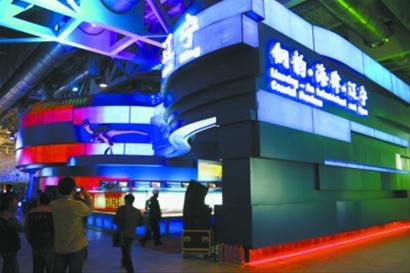 遼寧館位于上海世博園中國館旁的省區市館內,占地600平方米。鋼板打造的一朵藍色的巨大浪花,構成了遼寧館的整體外形,充分詮釋了遼寧館的主題“鋼韻海律”。遼寧老工業基地所創造的眾多“共和國第一”,沿海經濟帶、沈陽經濟區所帶來的新面貌都一一呈現。作為世界第一只鳥飛起以及世界第一朵花開放的地方,將有14片珍貴的古生物化石首次集體亮相遼寧館。據介紹,4月20日,遼寧館將開始試運行。
