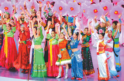演出劃分為3段,第一段8分鐘,是燈光和激光藝術創造的展示,1200只彩色探照燈、17臺高功率激光器、LED特大屏幕284米長、35米高,改變了人們的藝術視野;第二段是10分鐘的裝飾表演,LED燈、旗船、固定噴泉和流動噴泉,突顯高科技,同時極大美化了自然;第三段12分鐘,是焰火的奇觀,這不是數量的顯擺,而是藝術質量的極致,講求的是新穎,水面焰火、陸地焰火、空中焰火、造型焰火交相輝映,就連鞭炮都是近些年設計的最新品種。