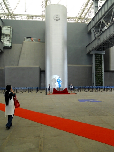 儀式現場揭曉了中國船舶館館徽和吉祥物。中國船舶館館徽是以漢字“船舶”的抽象形態為設計主體,圖案以造船業最古老原始的“帆”為符號,反映出船舶業燦爛的歷史和深厚的文化底蘊。吉祥物“船寶”以水滴為創意原型,以可愛的人性化形象為表現形式,顏色采用中船集團公司獨特的“中船藍”。