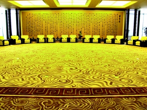 ●正北廳為玄廳。北廳五行屬水,水色玄(即黑色)。為此,藝術品則以傳統書法的《論語》和《道德經》展示其中。