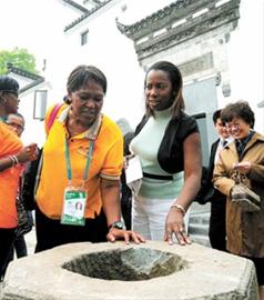 昨天(6日),(上海)寶山區羅涇鎮社區文化活動中心迎來一批不同膚色的尊貴客人——來自美國、朝鮮、塞內加爾、土耳其、聯合國等18個上海世博會參展國家和國際組織的43名代表,上海世博會首場參展方與區縣友好交流活動在這里舉行。