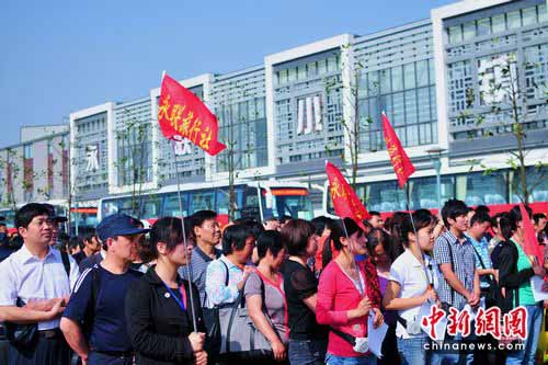 永聯村民職工“萬人游世博”首發團整裝待發。李克祥 攝