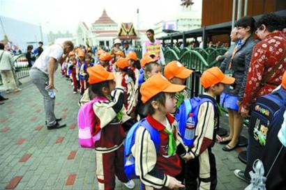 這兩天,世博園里出現了很多身著校服,組隊游覽的中小學生。原來,他們都是參加“考后世博游”的孩子。期末考試結束后,本市和外省市的不少中小學立即組織學生前往世博園,把這里當作了新的課堂。對此,華師大副校長任友群教授表示,中小學應充分利用世博會資源,在即將到來的暑假和新學期中,由老師帶領學生進園區,開展“世博教學”。