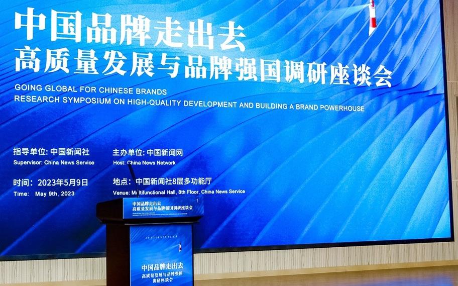 2023年5月9日,由中國新聞社指導、中國新聞網主辦,以“中國品牌走出去”為主題的高質量發展與品牌強國調研座談會在北京舉行。調研座談活動以推動中國高質量發展,加快品牌強國建設,助力中國品牌走向世界為主旨。