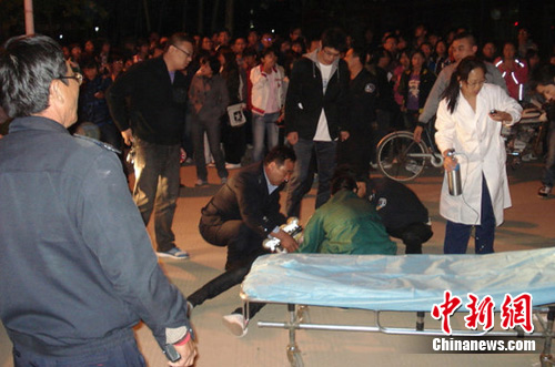 事發現場,肇事車輛前擋風玻璃當場撞碎,兩被撞女生一人昏迷,一人倒地不能動,昏迷女孩頭部有血跡。事發后,有學生去通知校警衛室,有學生去通知校醫,有學生撥打了110、120,也有學生記下肇事車輛車牌號。