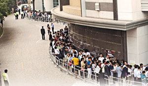 通脹跑贏存款利率,香港踏入負利率時代,市民紛紛將資金投入樓市以求增值。圖為浪澄灣示范單位開放,吸引大批市民排隊等候參觀。來源:香港文匯報