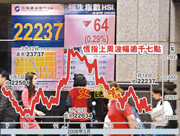 中新網3月17日電 據(jù)香港文匯報報道,受到貝爾斯登資金周轉不靈的消息拖累,美股大插近200點,一眾以美國預托證券(ADR)形式上市的港股也全線受挫。有香港證券界人士預計,18日港股將低開約500點,即下試今年低位21709點。