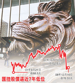 恒豐證券董事長張華峰認為,大笨象近日跌個四腳朝天,可能與大戶想質低恒指入市有關。他指出,大市明年有望好轉,大有提早結束熊市之勢,但港股在10月份開始已累積相當升幅,一眾基金被大市突然的好轉殺至措手不及,很多還來不及買貨,指數已向上飆升,故他們惟有希望先將大市“質低”,以求在低位入平貨。而質低匯控幾乎等如質低大市,所以近期有多間大行不約而同地集體唱淡,實在并非巧合。