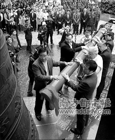3月18日上午10時,中英街博物館前,來自深港兩地的代表一齊撞響中英街的警示鐘,18聲悠長的鐘聲響徹中英街;在博物館另一側的中英街上,來自沈陽的一個旅行團正在展示購物的收獲,掏錢較多的也不過是180元一條,印滿洋文的“雙喜”牌香煙!疤挆l了,很失望”,一位游客說:“沒生意,沒法做了”,中英街一家店鋪的老板娘擺擺手對記者說。