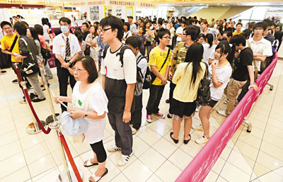招聘會“常客”天然護(hù)理用品中心今年內(nèi)會擴(kuò)張20間分店,因此這次招聘會希望能夠招聘50位售貨員。該公司營運總監(jiān)紀(jì)雅麗指出,受金融海嘯影響,售貨員底薪連勤工獎由去年的6800元下跌至今年的5800元,但若雇員通過3個月試用期,公司會將底薪連勤工獎?wù){(diào)升至6800元。