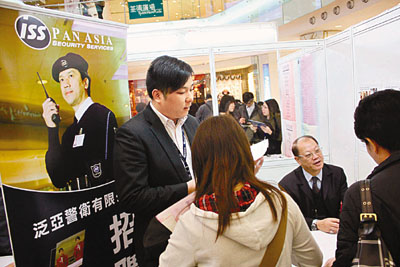 泛亞警衛(wèi)4日提供80個(gè)保安員職位,該公司培訓(xùn)經(jīng)理曾沛焜表示,為留住人才,集團(tuán)旗下保安員今年的薪酬較去年上升5至10%,以高級(jí)大堂經(jīng)理為例,月薪由去年的10500元上升至11500元,“英語(yǔ)普通話是基本要求,也要懂得急救技術(shù)”。