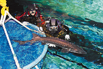 中新網4月24日電 據香港《文匯報》報道,內地贈送香港的10只國寶級中華鱘,經過16小時運送后,23日安全抵達香港海洋公園,該園指它們身體狀況及適應情況十分良好。