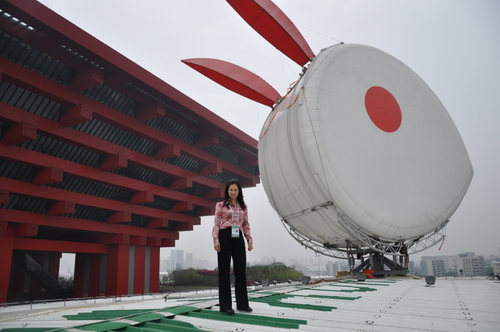 澳門館的玉兔宮燈的兔頭由充氣飛艇的專用織物所造,兔頭可根據(jù)風向轉動,保持迎風姿態(tài)。