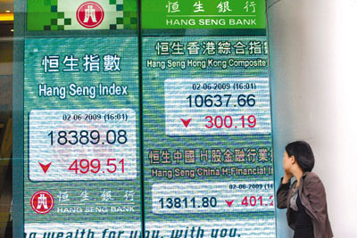 中新網6月3日電 據香港《文匯報》報道,港股連升3個交易日并累積升近1900點后,2日終于出現較具規模的調整,早上在外圍帶動下高開曾見18916點逾8個月的高位后,不夠100點便觸及19000點大關,但午后隨A股回吐,最多跌近600點,下試18300點水平,最終全日收報18389點,跌499.5點,跌幅2.6%。