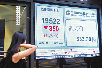 中新網9月3日電 據香港《文匯報》報道,A股剛見回穩,美股又展開新一輪跌勢,道指周二晚跌185點,縱使A股回升1.1%,但仍無阻港股再挫。恒指2日低開312點后,最多跌446點,全日收報19522點,跌350點,跌幅1.8%。