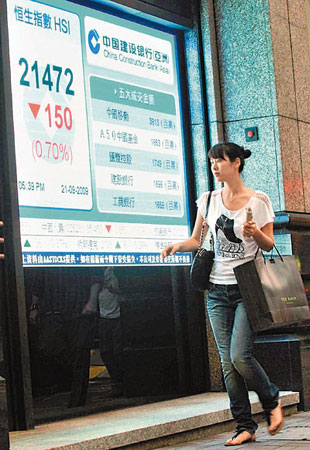 匯控跌0.27%,收報90.95元,結束連升4天的強勢。中移動逆市升0.58%,報78.4元。內銀股跌幅較大,中行挫3.2%,信行跌2.4%,工行跌2.3%。地產股及航運股弱勢,恒地挫3.1%,有李嘉誠增持的長實跌0.75%,收市報99.1元,中遠洋跌1.8%,太航跌2.2%。