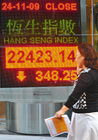 中新網(wǎng)11月25日電 據(jù)香港《文匯報(bào)》報(bào)道,在解決B股歷史遺留問(wèn)題憧憬落空等一連串利空消息打擊下,內(nèi)地股市24日下午出現(xiàn)恐慌性拋售,上證B股收跌7.34%,上海A股也急挫3.45%。港股受拖累,24日午后開(kāi)市即挫200點(diǎn),收跌348點(diǎn),至22423點(diǎn)。