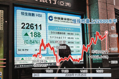 中新網11月26日電 據香港《文匯報》報道,內地A、B股齊反彈,帶動恒指25日回升,但升幅遠比內地股市小。上證A股25日反彈1.9%,上證B股更升5.1%,帶動恒指先跌后回升,全日收報22611.8點,升188.6點,升幅不夠1%,但成交增至787億元。
