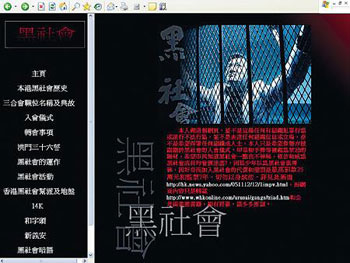 其中一名學(xué)生以黑社會(huì)為題制作網(wǎng)站,內(nèi)容涉及幫派歷史、入會(huì)儀式、誓詞、暗語等,該生在首頁聲稱設(shè)立網(wǎng)站并非宣揚(yáng)不法行為,只希望透過披露被視為禁忌的敏感數(shù)據(jù),避免青少年因好奇而模仿或加入黑社會(huì)。