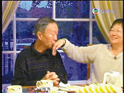 在眾人要求他親吻太太下,高錕登時滿臉通紅,但仍掛著可愛的笑容,有點猶豫地反問大家:“這怎么做呀?”坐在丈夫身旁的黃美蕓即醒目地遞上手背給丈夫,笑說:“就親手啦!”以回應(yīng)眾人的要求。高錕于是輕吻愛妻手背,讓黃美蕓甜笑起來。其后她忍不住摸摸高錕的臉頰,取笑丈夫面紅。