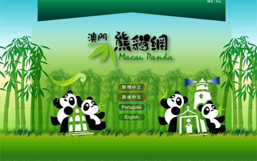 考慮到大熊貓的生活環(huán)境和習(xí)性,“澳門(mén)熊貓網(wǎng)”以綠色及竹葉為主,并以一對(duì)大熊貓背靠著澳門(mén)著名世遺景點(diǎn)--大三巴牌坊為圖案,吸引用戶的視線,展示澳門(mén)、大熊貓及網(wǎng)站的關(guān)聯(lián)性,亦希望加強(qiáng)市民對(duì)大熊貓的關(guān)懷及重視。