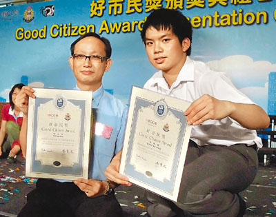 18日共有40名好市民得獎,15歲的容啟聰為最年輕的得獎者。本年1月,他參加運動會時發現一名可疑男子把一些手袋放到運動場外的私家車上,懷疑他偷去同學的財物,于是立即通知老師胡文安,并與胡一起追截該男子。該男子其后駕車逃去,他們立即記下其車牌號碼及報案。