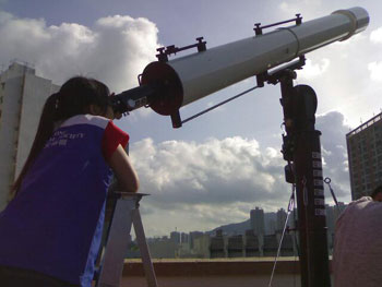 另外,香港天文學(xué)會也在屯門一間小學(xué),擺放有濾光設(shè)備的望遠鏡,供市民觀看日偏食,預(yù)料會有大約1000人觀看。