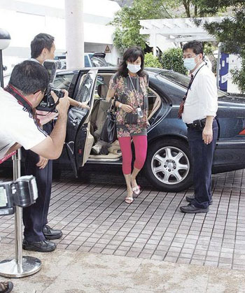 被不停追問賭王的昏迷傳聞,又難怪三太陳婉珍顯得不耐煩。(圖片來源:明報)