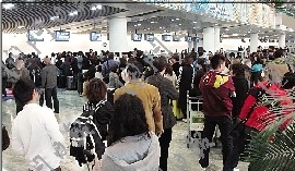 澳門對外航空交通受影響,大批旅客滯留機場。(圖片來源:澳門日報)