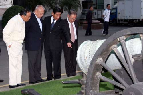 董建華一行參觀公司后,隨即驅車轉往臺南奇美博物館,奇美實業董事長廖錦祥親自陪同。
