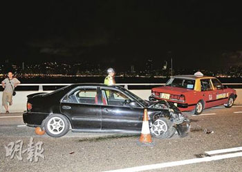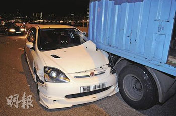 逾20輛經改裝的私家車,13日凌晨在被視為香港熱門非法賽車“跑道”之一的觀塘繞道,以160公里時速狂飆。警方接報趕至,并事先在繞道上截停5輛普通市民的車輛,作為堵截非法賽車的路障。未幾,10多輛跑車陸續高速馳駛沖過防線,另有最少3車實時掉頭逆線逃去,而5輛被充作“人肉路障”的汽車頓成犧牲品全被撞毀。有挨撞的士司機不滿警方做法,即場指斥“沒有理由要我們充當‘人肉沙包’!”。