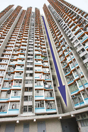 這次是青衣17天來第2條公共屋村發(fā)生大型物件被扔下樓的事件。在11月30日晚,有人從青衣村宜偉樓高處擲下一個25吋日立牌舊款電視機,最終跌落梯間對面的行車通道墜毀,幸無人受傷,警方初步調查,懷疑狂徒將一部被住戶丟棄的電視搬到高層樓梯扔下街。