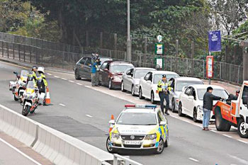 中新網1月11日電 據香港《星島日報》報道,汲取“人肉路障”截非法賽車事件教訓,香港警方10日在西區薄扶林道以警車攔截飚車一族,截查10輛懷疑非法賽車,其中6車被截停,6名司機及1名乘客被捕,其余4輛車掉頭逃脫,1輛警車被撞毀,2名警員受傷送院。