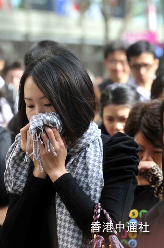 受到華北沙塵暴及東北季侯風南移影響,香港空氣質素22日轉壞,空氣污染指數更錄得破紀錄水平,有市民上街要掩鼻而行。 香港中通社圖片