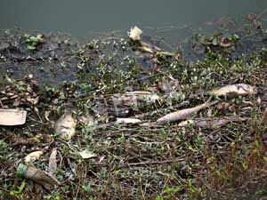 位于南粵批發市場后至青洲美樂花園之間的一段鴨涌河,可見有不少死魚尸體在水面漂浮,有些因河道水位下降,擱淺在近岸的泥沼草叢上,尸身已發脹且開始腐爛及發出腥臭味,附近居民反映在晚間睡覺時不時聞到陣陣腥臭味。