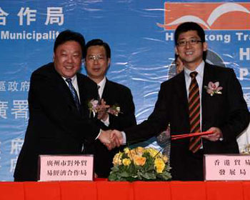 為攜手構建現代服務業體系,廣州市外經貿局與香港貿易發展局于發布會上,簽署了《穗港現代服務業合作備忘錄》,宣告穗港兩地政府將開拓合作新思維,推進現代服務業互利共贏。從今年起,穗港兩地政府將建立服務業合作年會制度和聯絡員制度,并重點在金融業、會展業、物流業、服務外包四大重點領域推進全面合作。