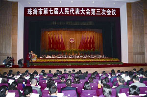 珠海七屆人大三次會議25日上午在珠海大會堂開幕,珠海市委書記甘霖,市委副書記、市長鐘世堅,政協主席余炳林等出席。