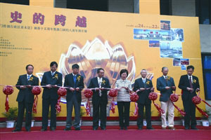 圖:嘉賓主持歷史的跨越圖片展剪彩儀式。(圖片來源:澳門日報)