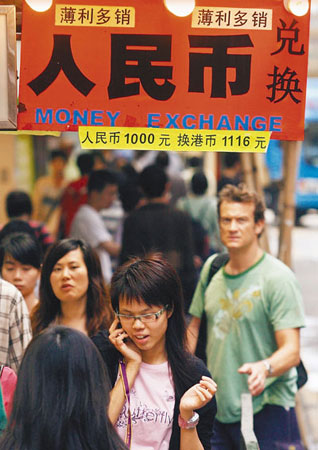 有專賣內地書籍的樓上書店負責人說,近半年來書價改了又改,原來以1兌1,將書底人民幣訂價兌換成港幣售價,早前已變成1兌1.3,近日更升至1兌1.6。有見人民幣愈來愈“好使”,不少市民紛紛買入人民幣“儲起來等升值”,兌換店生意宗數較前增加10%,利潤卻銳減50%。