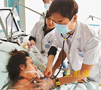 尹淑玲抵達醫院后,便協助病房內約百位骨折的病人,她把消毒藥水、紗布等放滿紅色背囊,懶理背囊與護士服不相襯,便扛著它穿梭病房,為病人清洗傷口,每天只睡4、5小時。“有個做了腳部截肢手術的30來歲的男病人,他背部也有一個大傷口,每次為他清洗傷口時,明知他很痛,但他很堅強,更感謝我們的幫忙!