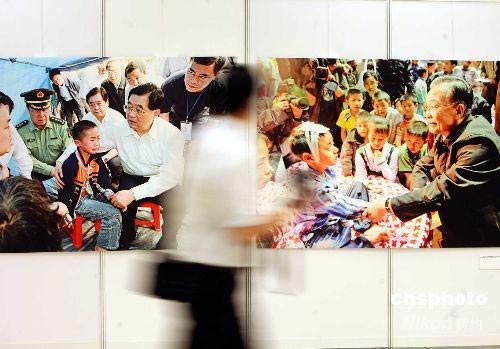 六月十七日,“大愛無疆—汶川大地震抗震救災圖片展”在香港展覽中心展出,主辦機構希望透過這次活動彰揚善舉,鼓勵災區人民走出悲情,迎向未來。中新社發 洪少葵 攝