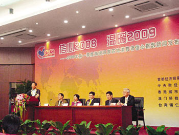 調查顯示,受國際金融危機的影響,2008年第四季度海峽兩岸和港澳地區消費者均出現信心不足的狀況。而今年首季,除個別項目外,海峽兩岸和港澳地區消費者的信心比2008年四季度有了普遍提升。