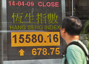 中新網4月15日電 據香港《文匯報》報道,外圍在復活節長假期間,股市持續向好,令港股14日要追回有關升幅,恒指高開401點后追貨買盤支撐大市,一眾當炒股份向上,全日收報15580點,升678.7點,升幅達4.5%,是今年1月7日港股跌穿15000點后,4個月以來首次重上15000點收市,且成交續增至754.21億元。