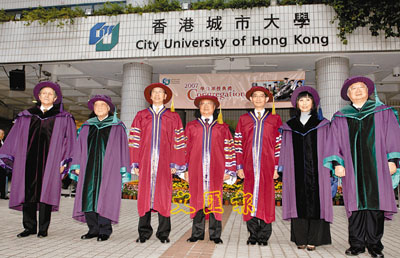 中新網11月9日電 香港城市大學昨(8日)舉行07年學位頒授典禮,向10,001名畢業生頒授學位,并同時向4名社會杰出人士頒授榮譽博士學位,包括長江制衣有限公司創辦人兼主席陳瑞球、香港合和實業有限公司主席胡應湘、著名藝人汪明荃及諾貝爾獎得主Claude Cohen-Tannoudji。