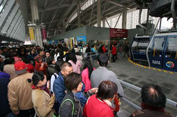 中新網(wǎng)12月27日電 昂坪360纜車27日進(jìn)行第五日試乘吸引近萬名市民前往,乘客輪候時(shí)間比前一日縮短近一小時(shí)。該公司董事總經(jīng)理張少華表示,他們吸取日前的經(jīng)驗(yàn),在排隊(duì)和廣播方面已有所改善。
