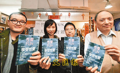 據(jù)香港大公報報道,紫藤3個月前招募20名義工出版免費派發(fā)的《性愛!!!Fun》,刊物內(nèi)容主要包括介紹不同性用品、性經(jīng)驗分享、由性工作者解答疑難的信箱,以及由專家分享性愛要訣等,預(yù)計會在月中派發(fā)約2000本創(chuàng)刊號,派發(fā)地點包括紫藤、指定性商店和書店。市民可由今天起到紫藤網(wǎng)站下載。