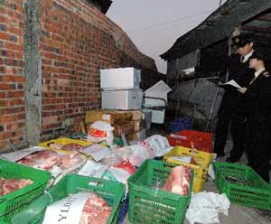 中新網3月5日電 香港食物環境衛生署(食環署)及警務處今早采取聯合行動,搗破一間位于元朗的無牌食物制造工場,并撿獲約五百二十公斤豬肉。