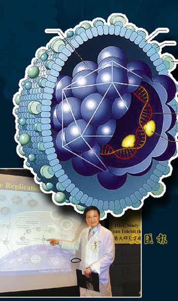 據香港文匯報報道,港大醫學院內科學系和理學院化學系經過3年的研究,發現“納米銀顆!笨捎行б种埔腋尾《緩椭。港大微生物學系助理教授許志堅解釋,納米銀顆粒有較大表面活性面積和多孔性,可與小分子相互結合。研究人員把平均直徑僅5至50納米的銀顆粒(100萬納米=1毫米),注入病人體內,銀粒便會依附在乙肝病毒上。