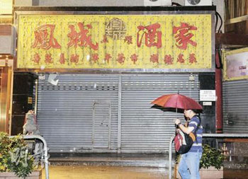發生懷疑食物中毒事件后,上環鳳城酒家11日晚沒有營業。(圖片來源:明報)
